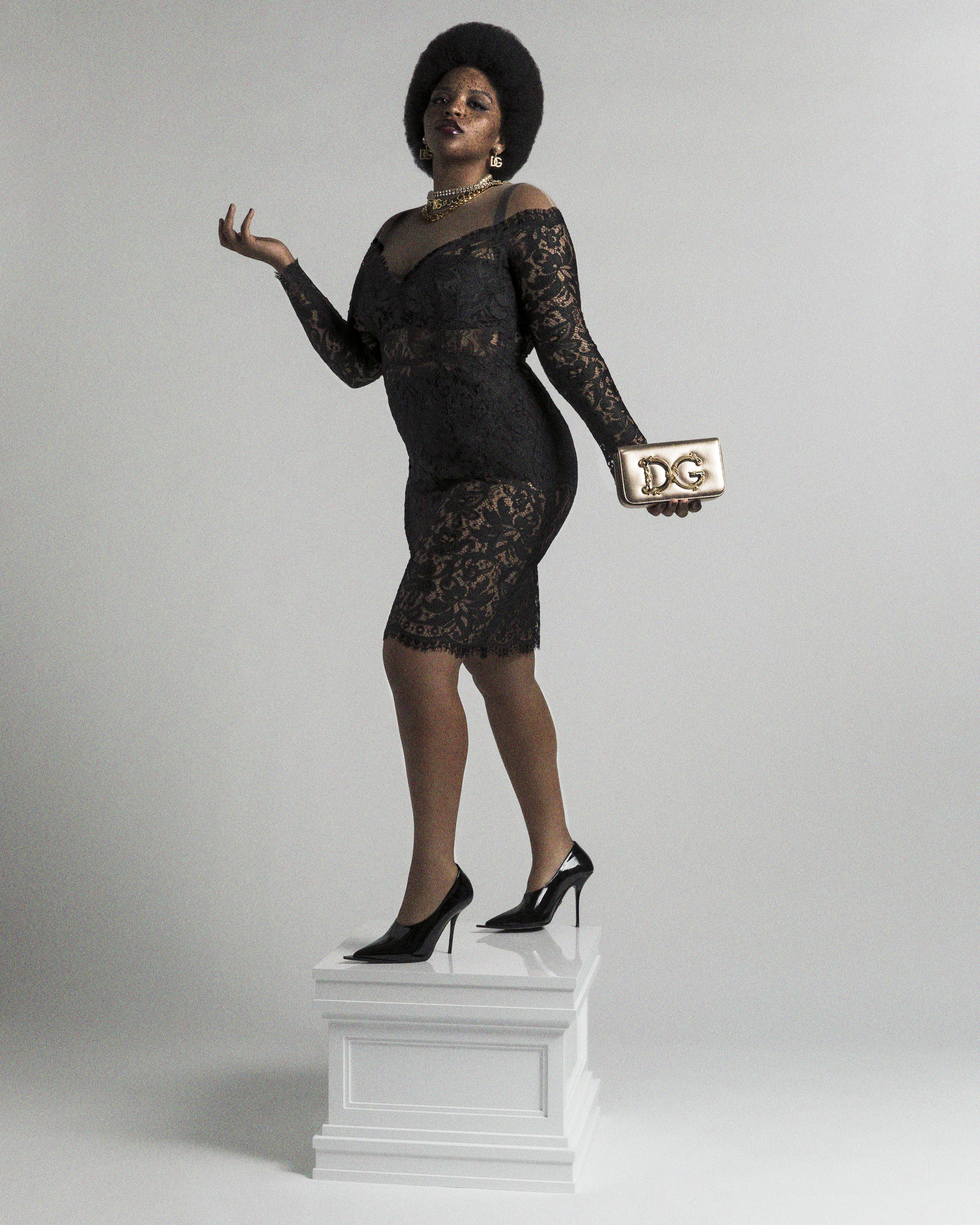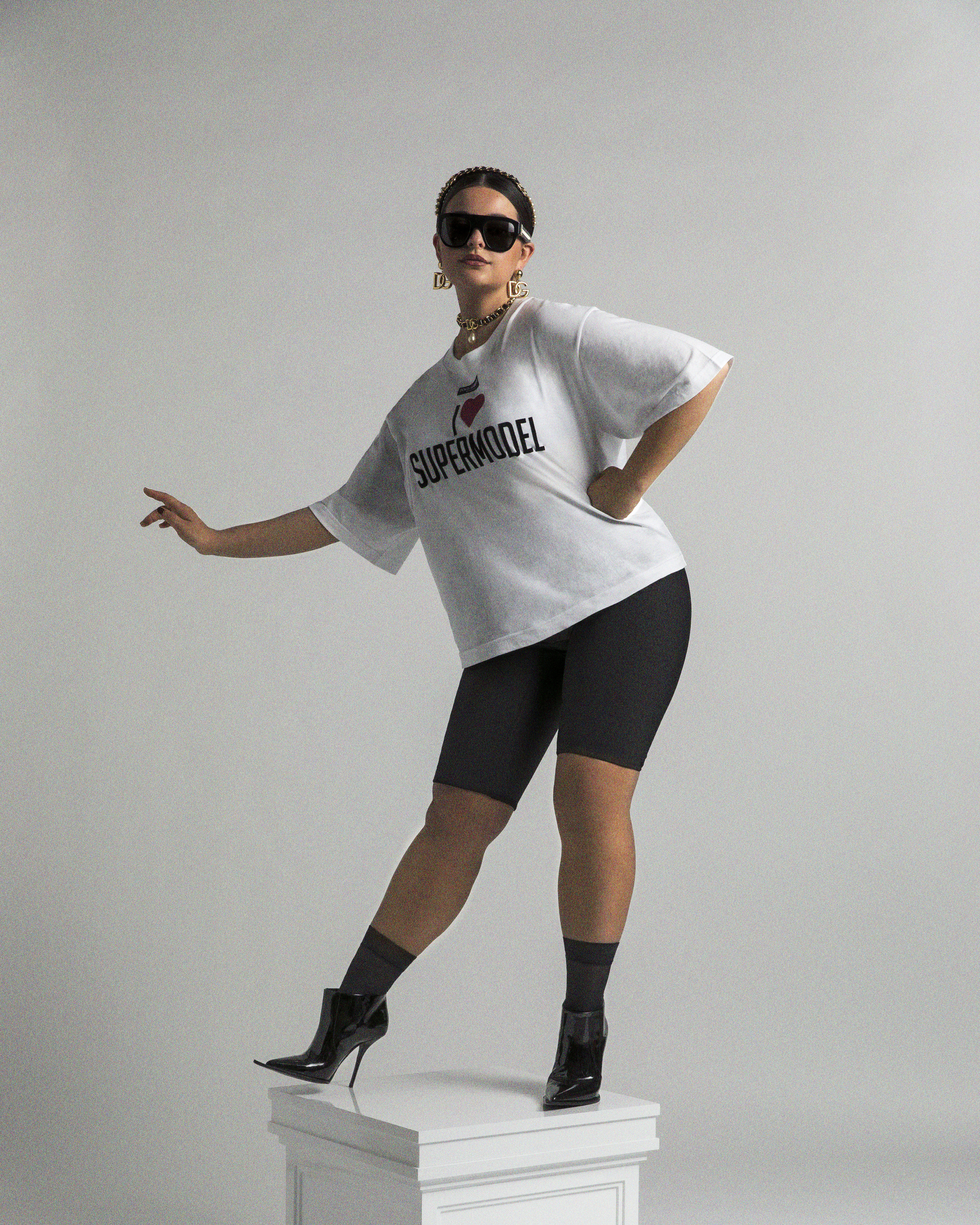 Echoing the demigoddess-que nature of the super mods of the golden age, Riccardo Bixio and Senio Zapruder puts Lina Giselle and Emma Giulia on a pedestal to explore fashion standards and classical proportions, in a 90s inspired collection by DOLCE&GABBANA.